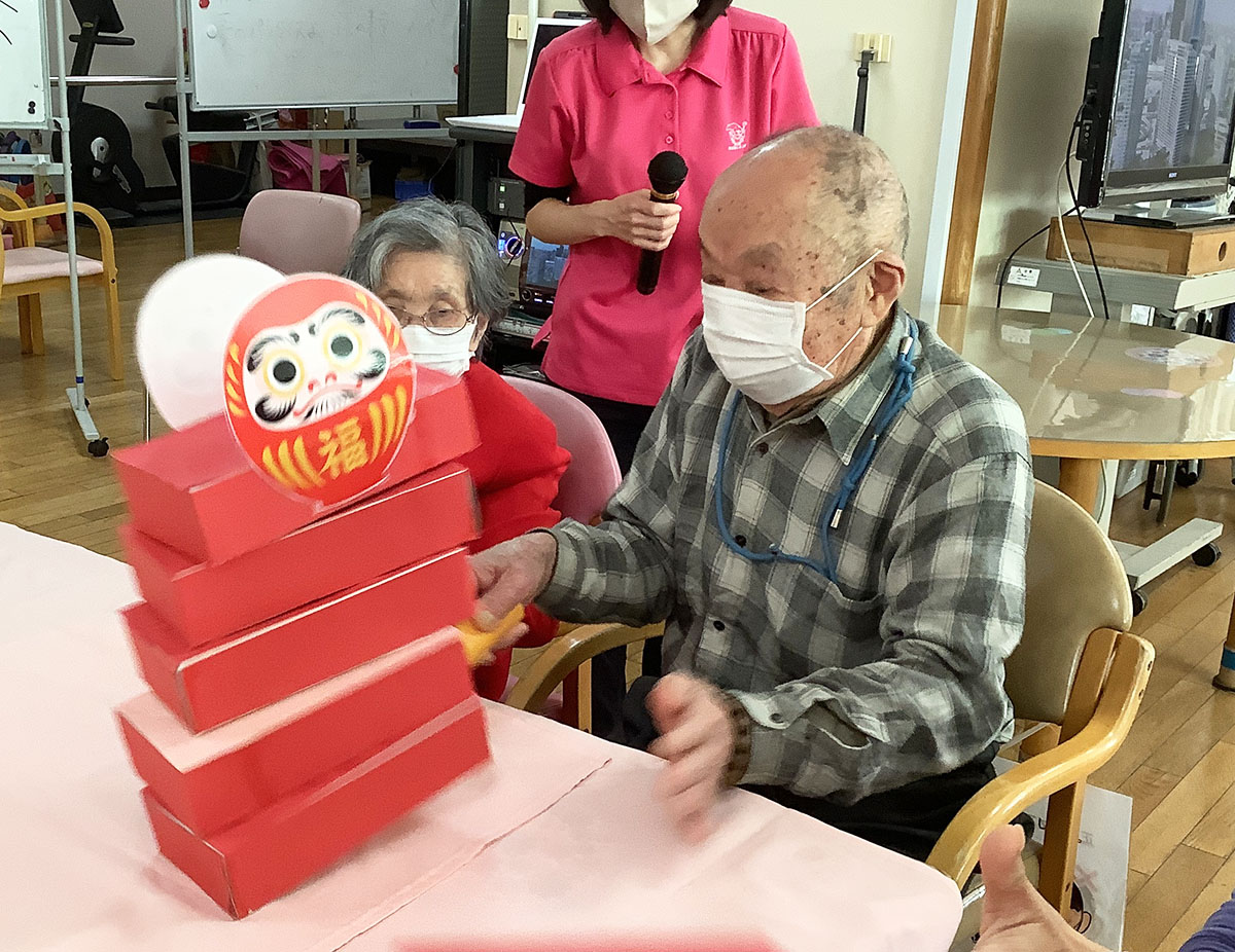 新年会スペシャルゲームでは『だるま落とし』を行いました!
