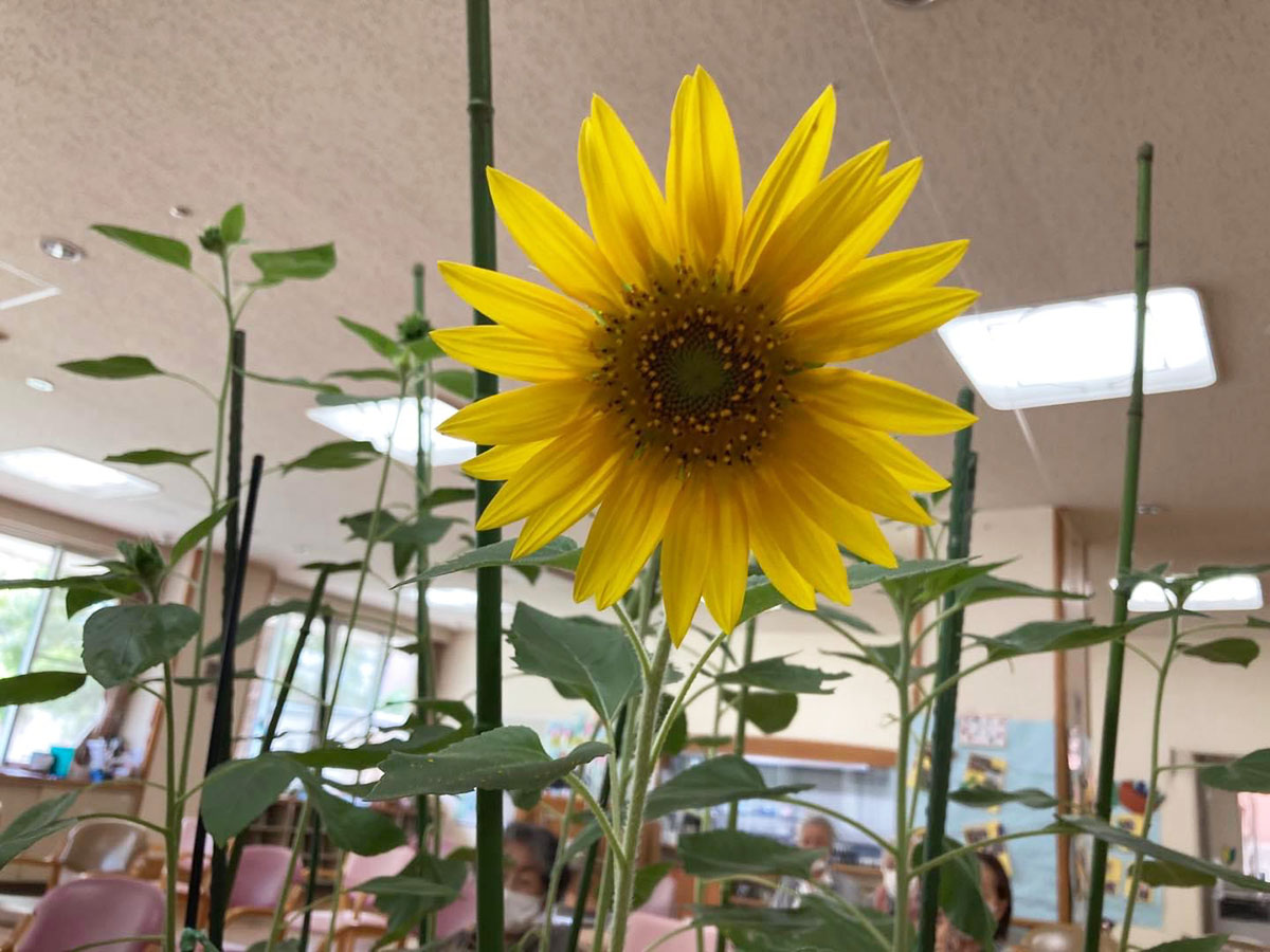 「ひまわりの色からは、元気が貰えるね!」笑顔で記念撮影!来年も育てましょう♪